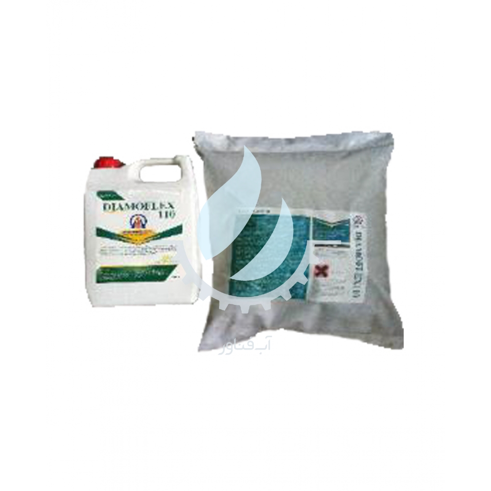 مواد آب بندی Diamo Flex 110 در بسته های 20 کیلو گرمی ( هر متر مربع 3/5 کیلوگرم) 1 گالن 5 کیلوگرم و 1 بسته پودر 15کیلوگرم
